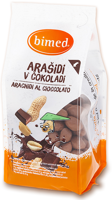 Ingredienti: cioccolato al latte (zucchero, burro di cacao, latte in polvere, massa di cacao, emulsionante: lecitina di soia, aroma naturale di vaniglia), arachidi, rivestimento (etanolo, acqua, agenti di rivestimento: gomma lacca, gomma arabicum; sucralosio, sciroppo di glucosio, olio vegetale di palma e di cocco, corretore di acidità: acido citrico, conservante: acido sorbico).